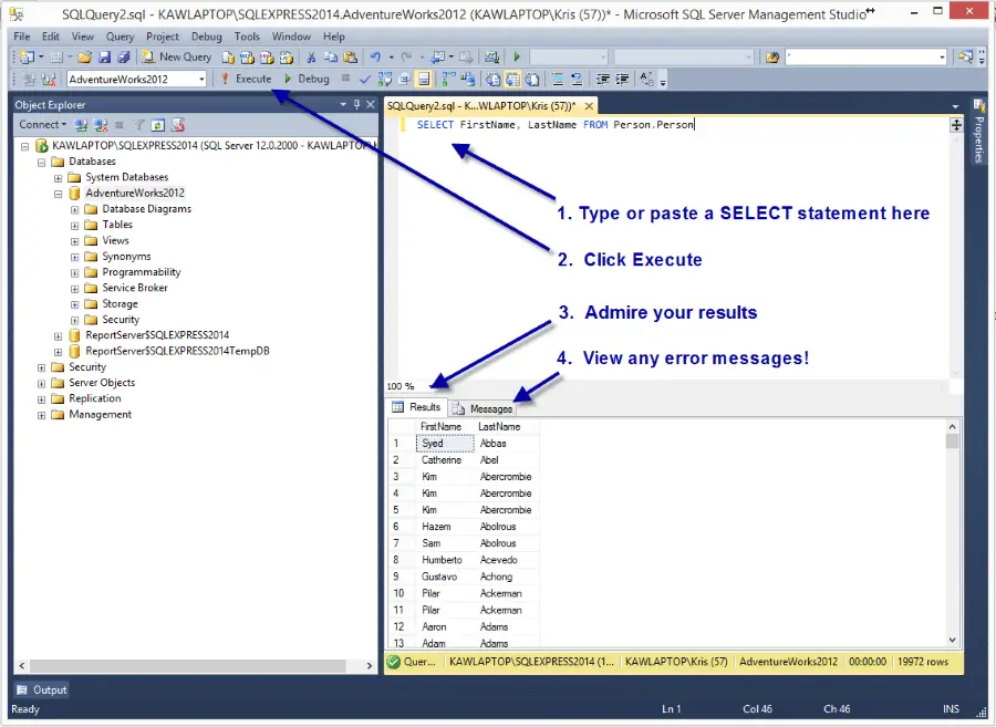 Running SQL Select Queries in SSMS
